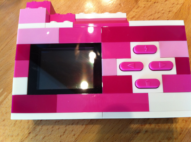 ちゃんとレゴの刻印の入ったシャッターボタン。左は電源スイッチ。ポッチは普通のレゴサイズなので、自分でパーツを使ってデコレーションすることもできます。