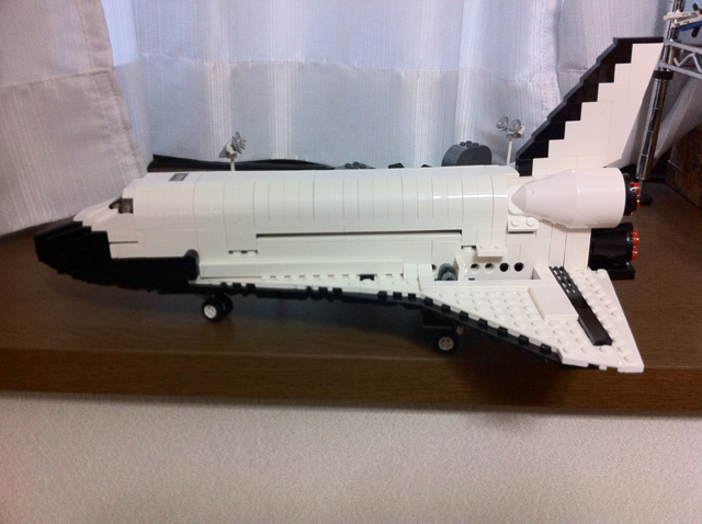 組み上がった姿はこんな感じです。思っていたよりも小振りでした。発射台になるグレーのプレートがあるので縦置きで飾っておけます。レゴは置き場所に困ることが多いので、このような縦置きはディスプレイしやすくて嬉しいですね。