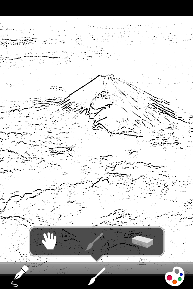 エッジラインの上をなぞっていくとなぞった部分に色がついていきます。何度もなぞるとその分だけ色が濃くなります。濃くなりすぎたところは消しゴムでなぞれば薄くなっていきます。