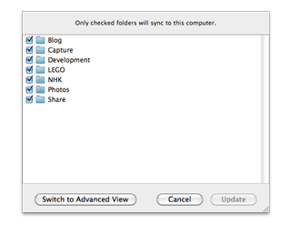 Dropboxの容量は最大でも10GBなわけで、たとえAirのSSDが対象といっても同期対象を選択する必要は無いくらいなのですが、WindowsとMac、Air、iPhone、のように幾つもの環境の間を同期しようと思うとWindowsとMacの間は同期したけどAirには同期が不要なデータもあったりするわけです。そのような場合にはやっぱり同期するフォルダをマシンごとに設定することができるSelective Syncは便利ですね。