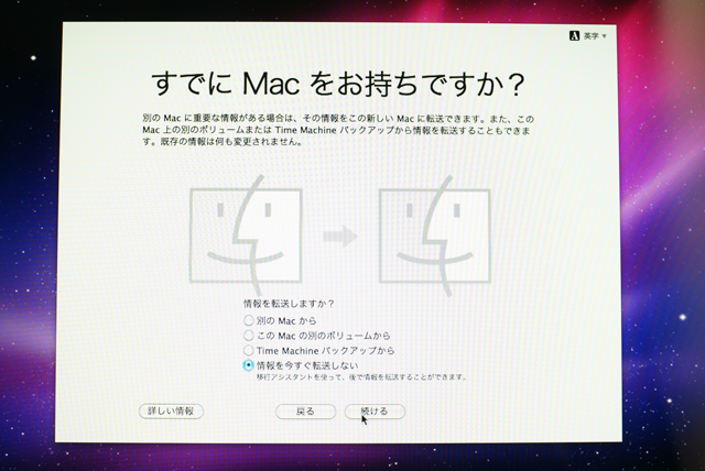 Snow Leopardのセットアップ。SSDのおかげかとても速い。