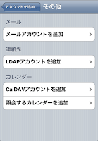 iPhoneの「設定」-「メール/連絡先/カレンダー」を選び、「アカウントを追加…」を選択します。一覧で表示されるアカウントの中から「その他」を選びます。カレンダーの中に「CalDAVアカウントを追加」というメニューがあるのでこれを選びます。