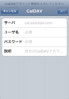 CalDAVの設定画面が表示されるので、ここに以下の情報を入力しますが、少し特殊なので注意してください。
