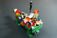 配色などがバラバラかと思えば、微妙なところにロゴ付きのブロックを持ってきていたりと結構考えているらしい。普段、作っては壊し、を繰り返すのだが、この怪獣はすでに3ヶ月くらい前にビルドしてから、このままの形で遊んでいる。